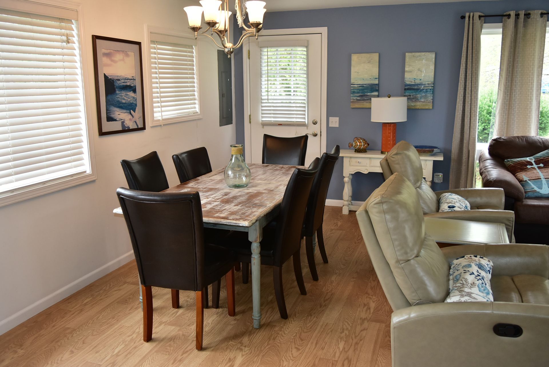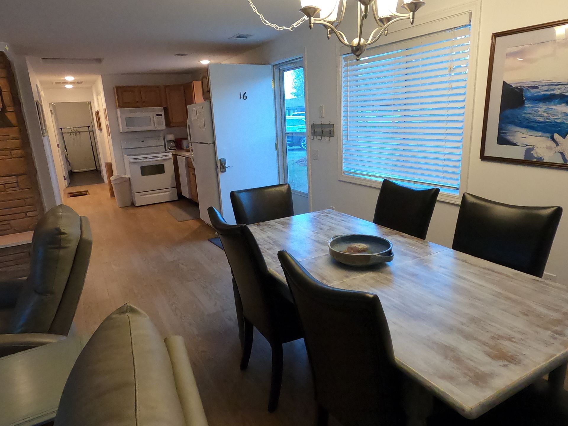 Our spacious 3-bedroom, 2-full-bath condo has been thoughtfully designed with your comfort in mind. The fully equipped kitchen features modern appliances, quality cookware, and all the essentials you need to prepare delicious family meals or quick beach snacks. The expansive great room serves as the heart of the home, complete with a cozy gas fireplace for cool evenings, comfortable seating for the whole family, and a generous dining area that accommodates everyone—plus room for guests.